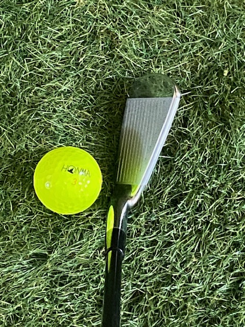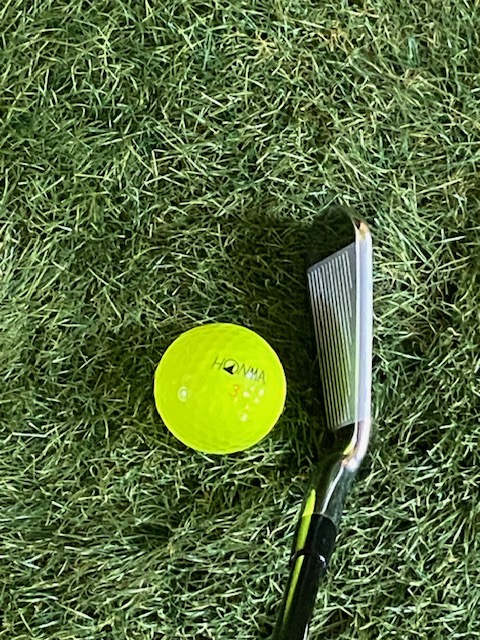 実際に飛球線方向(HONMAのロゴ)にフェース面をしっかり90度にセットすると